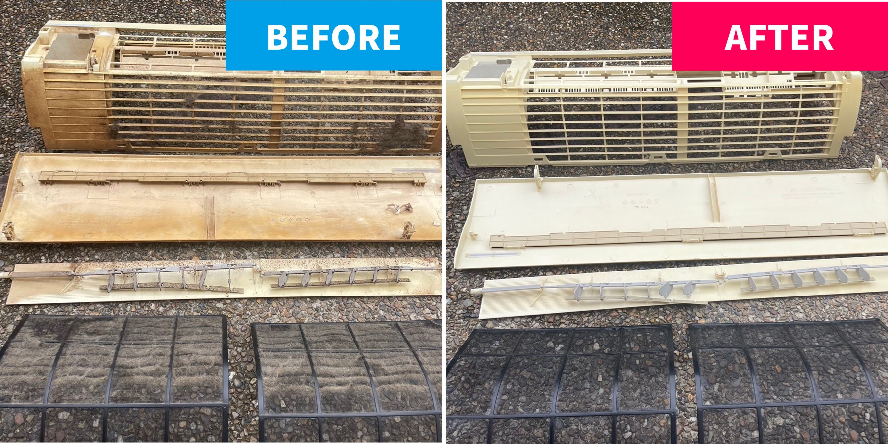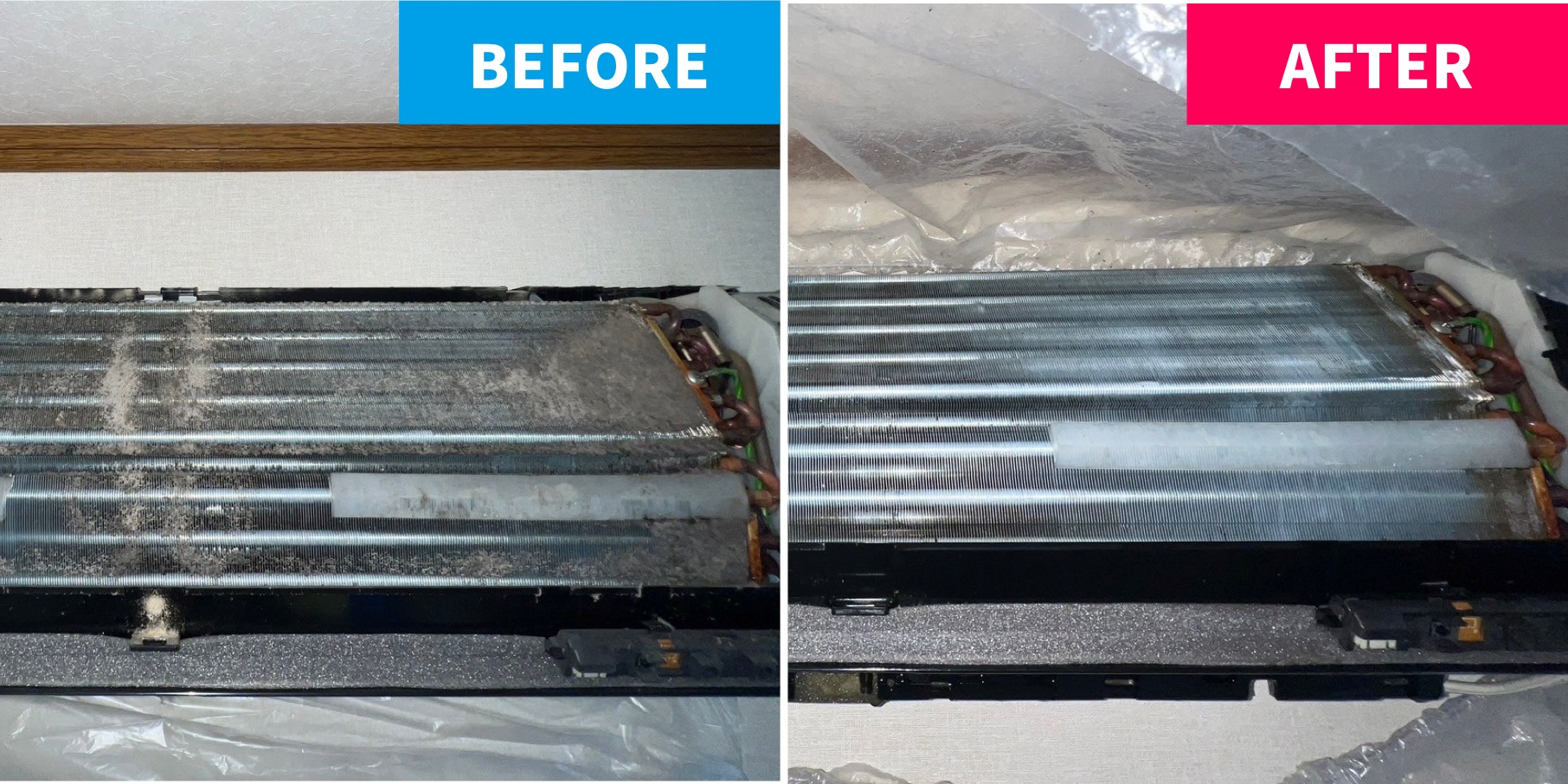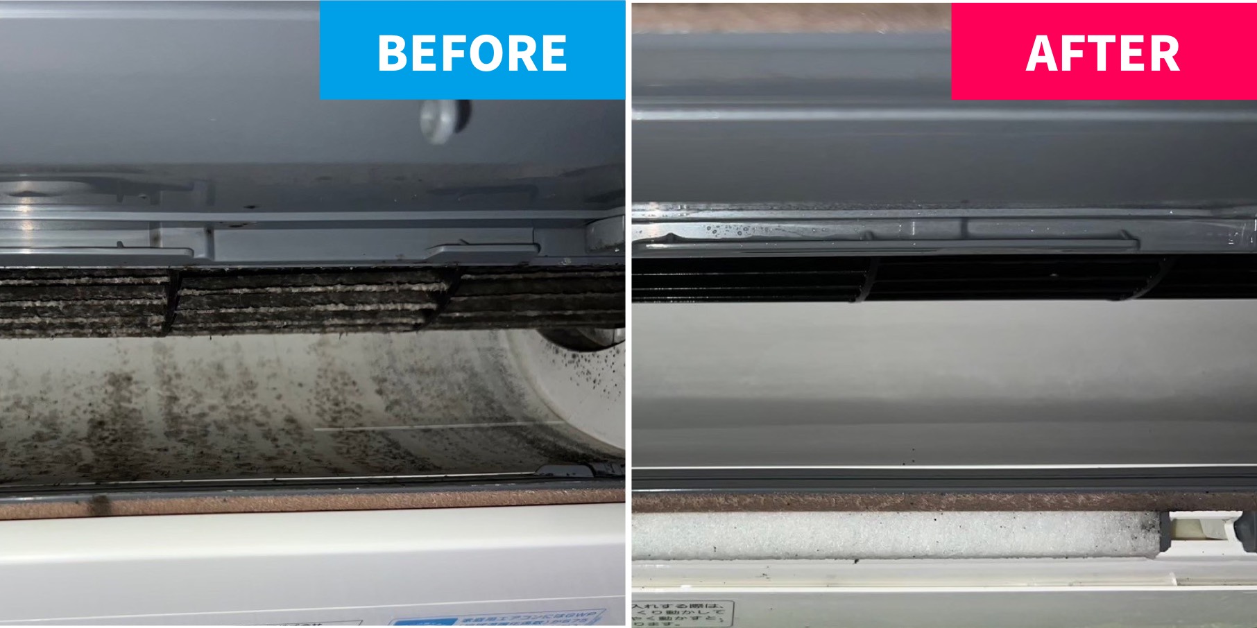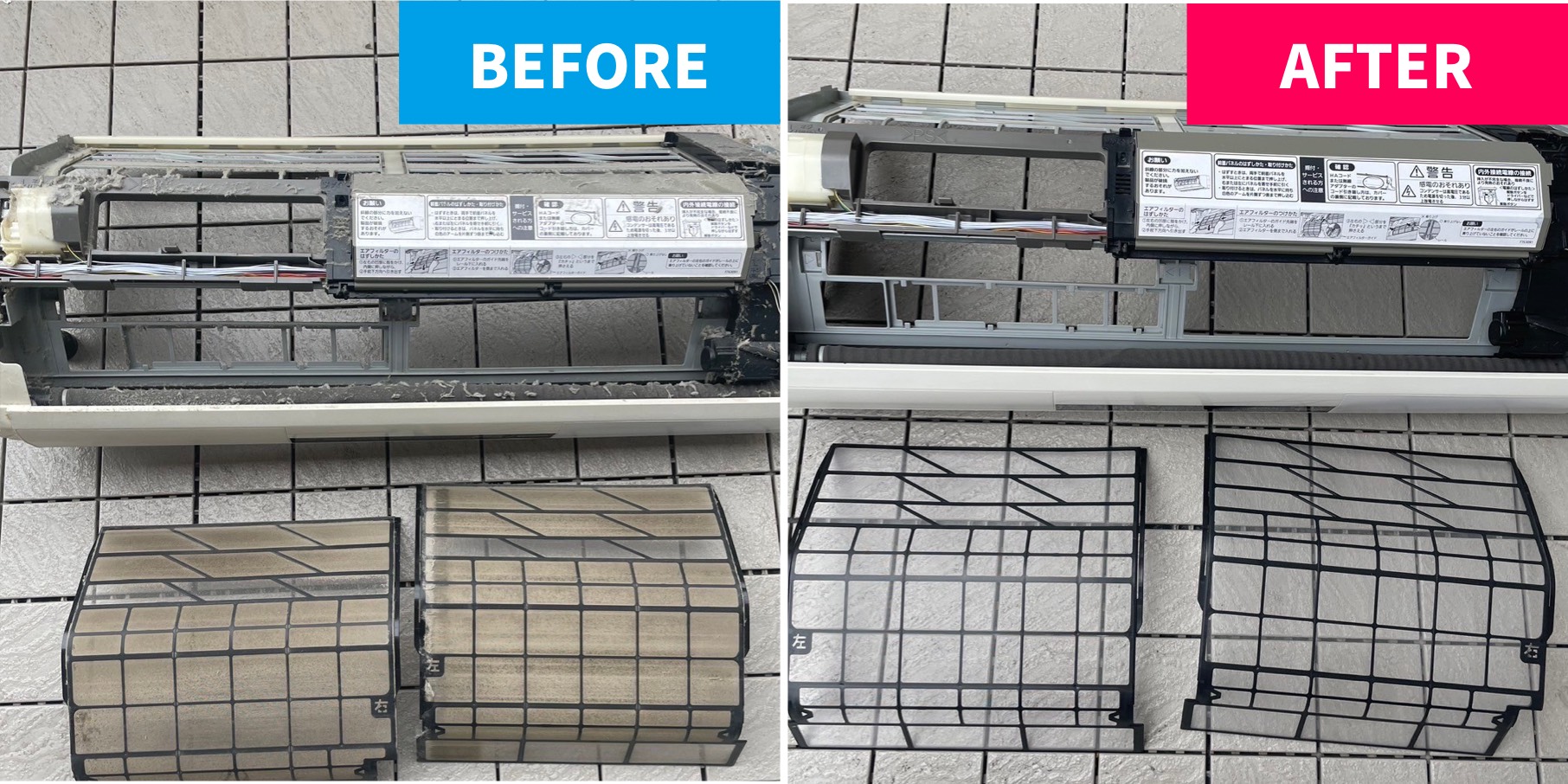 家庭用壁掛けエアコンクリーニング ビフォーアフター